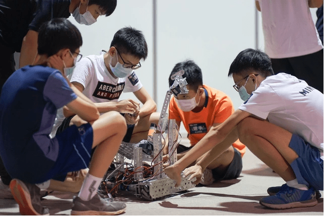 圖說:參加FTC的同學在賽前認真檢查、測試自己的機器人。